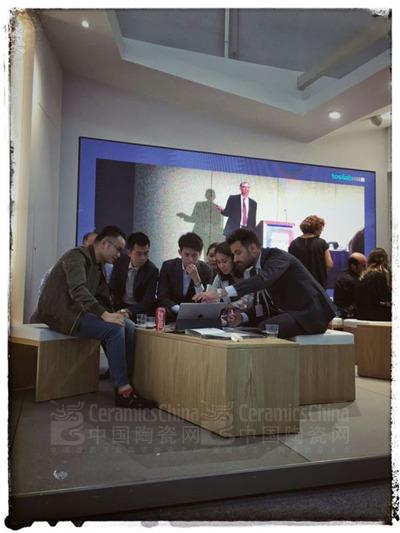 歐雅代表團(tuán)在觀展期間,被西班牙PORCELANOSA(寶路莎)瓷磚其獨特的風(fēng)格,產(chǎn)品品質(zhì)、工藝、展示設(shè)計所吸引,紛紛圍坐在一起聆聽其參展商的詳細(xì)介紹。