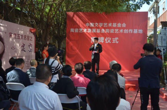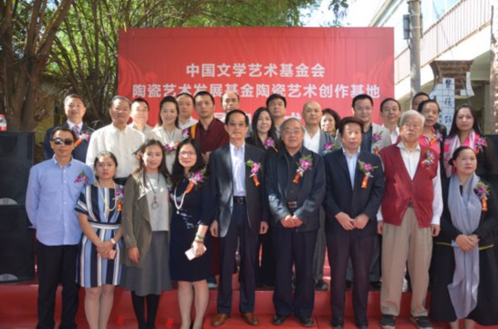 2016年9月28日上午,中國文學藝術(shù)基金會陶瓷藝術(shù)發(fā)展基金陶瓷藝術(shù)創(chuàng)作基地揭牌儀式在宋莊景德鎮(zhèn)瓷藝坊(北京廣余梵樸陶瓷藝術(shù)有限公司)隆重舉行。原中央黨校組織部長張虎林教授、原中國工藝進出口總公司總裁劉培金、國家旅游局巡視員鄧宗德、中國畫報協(xié)會常務副會長兼秘書長程更新、中國收藏家協(xié)會陶瓷收藏委員會主任荊志忠、前文化部駐韓國大使館參贊朱英杰、中國文學藝術(shù)基金會馮曉琳、中國文學藝術(shù)基金會陶瓷藝術(shù)發(fā)展基金主任曹年華、中國文學藝術(shù)基金會陶瓷藝術(shù)發(fā)展基金副主任兼秘書長李佩鴻、懸雕瓷畫藝術(shù)創(chuàng)始人、景德鎮(zhèn)瓷藝坊負責人徐初澤、中國國際投資促進會副秘書長孟凡松、中國人口福利基金會唐卡公益基金創(chuàng)始人代英等嘉賓出席了揭牌儀式。