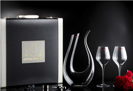 與會展商針對禮品渠道,開發(fā)出各種可個性化訂制的禮品套裝,如來自山西玻璃制品團的祁縣東久玻璃器皿有限公司,一款無鉛水晶酒具禮盒套裝采用防皮質(zhì)禮盒,內(nèi)配無鉛水晶酒具,純?nèi)斯ご抵芔型醒酒器一壺兩杯,附帶酒刀,酒塞,酒環(huán),不失為高端禮品的上佳選擇。