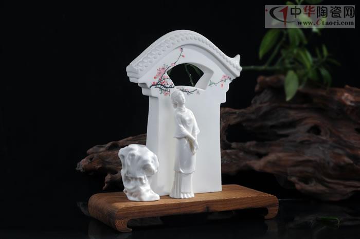 摸泥世家李錦峰作品,以場(chǎng)景式風(fēng)格創(chuàng)作,女子恬靜立于太湖石旁,翹首以盼,身后一枝梅花,淡淡水墨,整個(gè)作品富有江南韻味。作者師承當(dāng)代著名雕塑家王則堅(jiān)、中國(guó)工藝美術(shù)大師盧思立等名家,2015榮獲首屆陶瓷成型職業(yè)技能全國(guó)總決賽雕塑競(jìng)賽第一名。