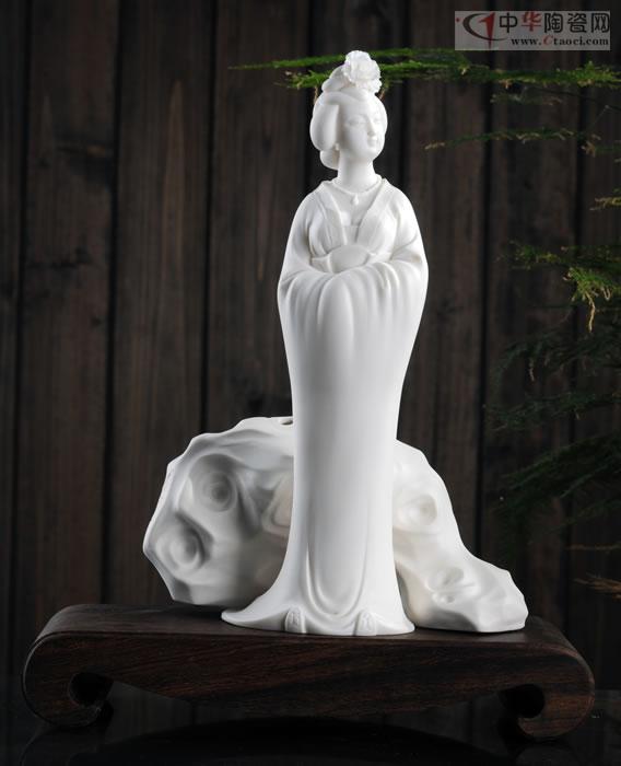 婀娜的體態(tài),閉月羞花的容貌,以雍容的牡丹花裝飾,作品華貴而不失典雅,貴妃臉上帶著一絲淺淺的笑意,不禁讓人想起杜牧的詩(shī)句:“一騎紅塵妃子笑,無(wú)人知是荔枝來(lái)”