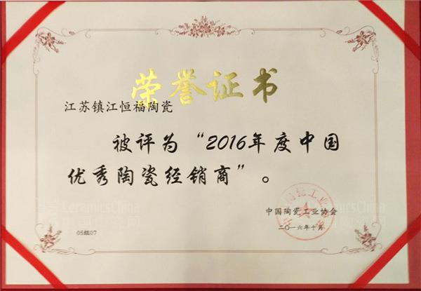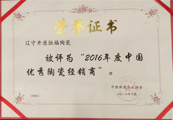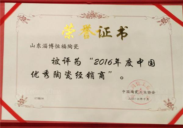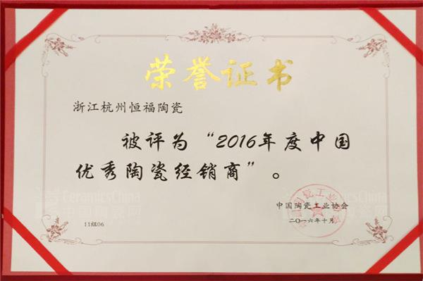 10月19日下午,由中國(guó)陶瓷工業(yè)協(xié)會(huì)營(yíng)銷分會(huì)主辦的2016年度中國(guó)優(yōu)秀陶瓷經(jīng)銷商頒獎(jiǎng)典禮在瓷海國(guó)際會(huì)議廳隆重舉辦。恒福陶瓷十位經(jīng)銷商榮享盛譽(yù),被評(píng)為“2016年度中國(guó)優(yōu)秀陶瓷經(jīng)銷商”,他們分別是河源、莆田、茂名、武漢、曲靖、鎮(zhèn)江、杭州、開原、銀川、淄博的經(jīng)銷商。