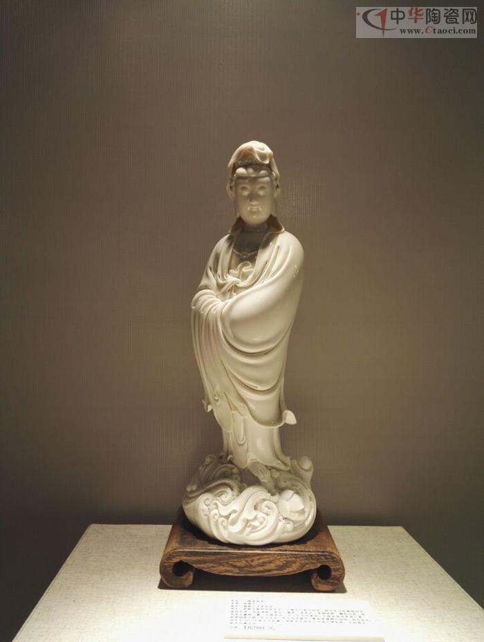 林建平最具代表作品,以德化白瓷為胎質(zhì),圓勁有力如凝脂似玉,滋潤(rùn)瑩滑。線條清晰、簡(jiǎn)潔、瀟灑,多變化,柔媚流暢,翻轉(zhuǎn)自然,觀音雙手藏袖,露一足踏蓮花,另一足水花掩蓋,作踏浪凌波渡海之勢(shì)。神情嫻雅平靜,安詳自若,雙目低垂凝思。整座塑像精巧細(xì)致,神態(tài)如生。該作品2013年被永久收藏于福建省非物質(zhì)文化遺產(chǎn)博覽苑。手刻簽名,極具收藏價(jià)值。