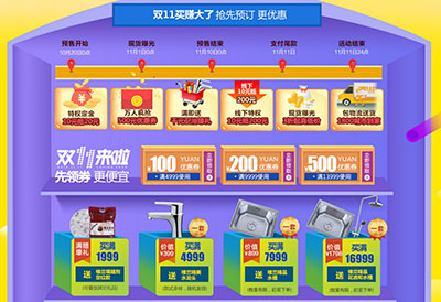 今年的“雙十一”,樓蘭陶瓷天貓旗艦店推出多項優(yōu)惠,從10月20日0點開始提前預售,讓顧客提前享受優(yōu)惠待遇。“特權定金10元抵20元”、“100-500元優(yōu)惠券提前搶”,產品價格更優(yōu)惠;“滿額即送千元衛(wèi)浴豪禮”,精品花灑、水槽等五金配件任性送;“滿300元即可超值換購”,以超低的價格換到優(yōu)質產品。