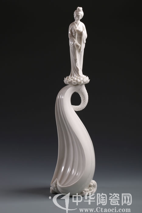 林建勝連續(xù)不斷地從事瓷塑藝術(shù)研究長達(dá)30多年,既有高超的手頭功夫,又有深厚的理論修養(yǎng)。他的作品以潔白、純凈、圓融、飽滿的德化白瓷為載體,再現(xiàn)壯健、自由、自信的漢風(fēng)唐韻,作品或厚重穩(wěn)健,或圓滿大氣,或自由飄逸,或雍容華貴,凸顯強者精神與盛世情懷。他之所以有較高的藝術(shù)造詣,是因為他從中專到大專再到清華美院不斷的學(xué)習(xí)深造,從中專教師到大學(xué)兼職教授20多年的教學(xué)歷練,從德化傳統(tǒng)工藝美術(shù)大師到大學(xué)美術(shù)教授的雙重師承,從工藝實踐、技能技藝到理論研究、學(xué)術(shù)研究的全方位提升。