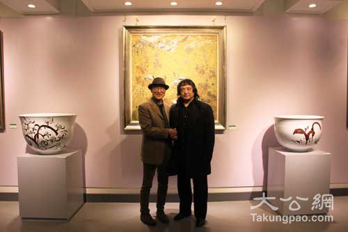 景德鎮(zhèn)陶瓷大學(xué)教授寧鋼(右)與檀國(guó)大學(xué)教授樸鍾勛(左)因陶相識(shí)、相惜,聯(lián)合辦陶藝展以迥異風(fēng)格詮釋大道至簡(jiǎn)。王逍攝