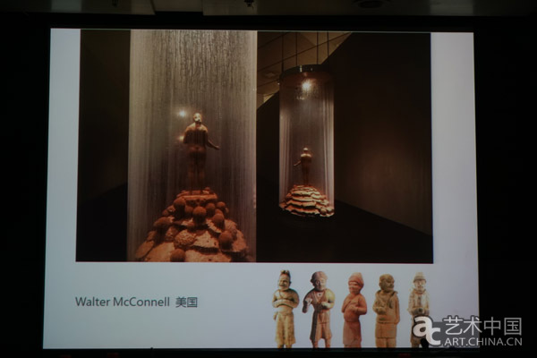 美國藝術(shù)家Walter McConnell的作品從河南博物館中挑選了四件唐代的胡俑,和一件美國收藏的中國胡俑,和他自己的一件雕塑,通過3D掃描技術(shù)重新翻模制作成為等人高的雕塑。荷蘭藝術(shù)家Jólan van der Wiel的作品在粘土中加入磁粉,從而來形成獨(dú)特的形態(tài)。藝術(shù)家在生產(chǎn)鈞瓷的陶瓷廠進(jìn)行創(chuàng)作,用到了中國傳統(tǒng)器形的模具。
