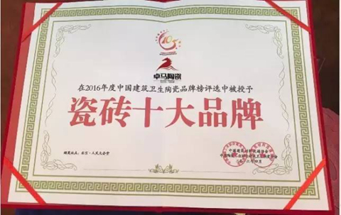 卓馬陶瓷“瓷磚十大品牌”榮譽(yù)證書