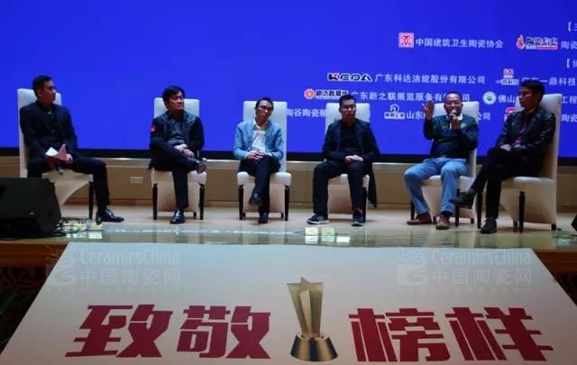 興輝集團(tuán)董事總經(jīng)理柯顯仁、新中源陶瓷有限公司常務(wù)副總經(jīng)理陳勤顯、宏宇陶瓷品牌銷售常務(wù)副總經(jīng)理張念超、資深營(yíng)銷人賴成東、費(fèi)羅娜陶瓷有限公司總經(jīng)理陳高照,對(duì)話論道。