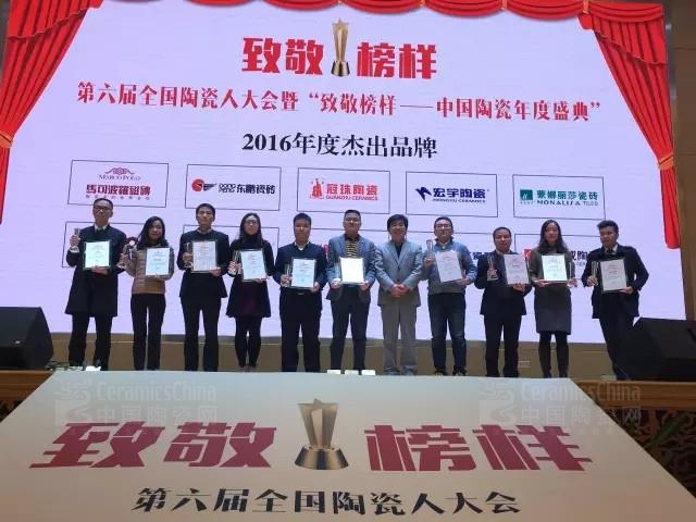 2016年度杰出品牌:馬可波羅瓷磚、東鵬瓷磚、冠珠陶瓷、宏宇陶瓷、蒙娜麗莎、金意陶瓷磚、歐神諾陶瓷、新中源陶瓷、簡(jiǎn)一大理石瓷磚、新潤(rùn)成陶瓷