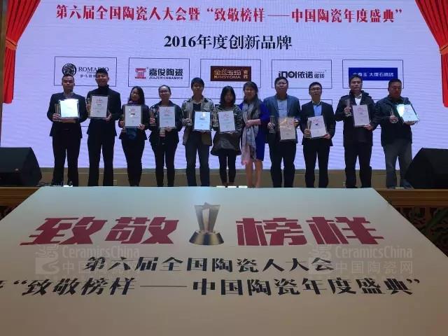 2016年度創(chuàng)新品牌:羅馬利奧磁磚、嘉俊陶瓷、金絲玉瑪瓷磚、依諾磁磚、金尊玉大理石瓷磚、維京瓷磚、太陽(yáng)陶瓷、壹號(hào)大理石瓷磚、裕成陶瓷、夢(mèng)幻玫瑰陶瓷