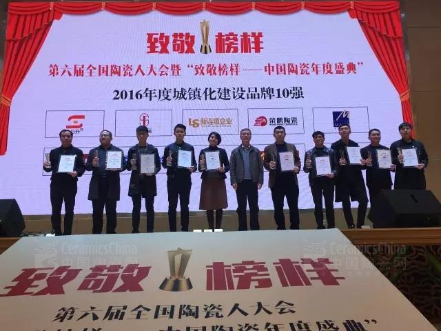 2016年度城鎮(zhèn)化建設(shè)品牌10強(qiáng):日日升陶瓷、雙福瓷磚、新連順企業(yè)、榮鵬陶瓷、華倫•美奧、神州古韻、藍(lán)蘋果瓷磚、金博達(dá)陶瓷、金泰源陶瓷、萬商紅陶瓷