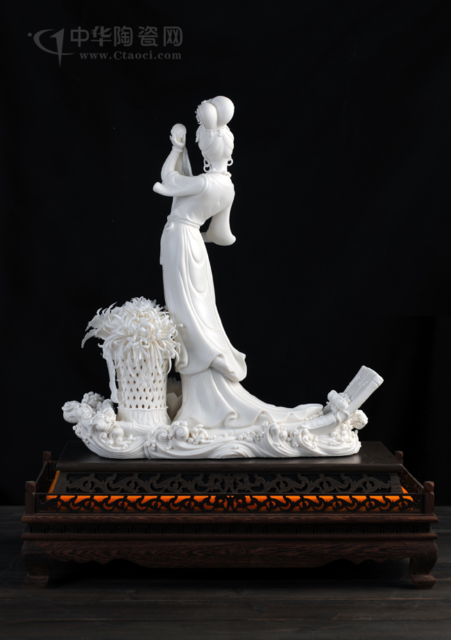 其作件件精美,靈活的雙眼、纖細(xì)的雙手、精致的菊花、牡丹等,不禁令人感嘆這精湛的工藝,鬼斧神工、妙趣橫生!風(fēng)華正茂的少女,在蘇志強(qiáng)的瓷刀下更是惟妙惟肖,或利用舞蹈展現(xiàn)女性的靈性;或透過(guò)勞動(dòng)體現(xiàn)女性的賢德淑良;或通過(guò)吹拉彈唱來(lái)演繹女性的空靈……