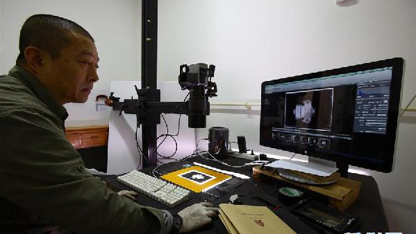 故宮工作人員采集清理清宮老照片玻璃底片(資料照片)。故宮博物院經(jīng)過三年藏品清理工作,增加了55132件登記藏品,涉及乾隆御稿、尺牘、甲骨、陶瓷等種類文物、標(biāo)本。這些新“上戶口”的藏品已于3月15日起在延禧宮展覽