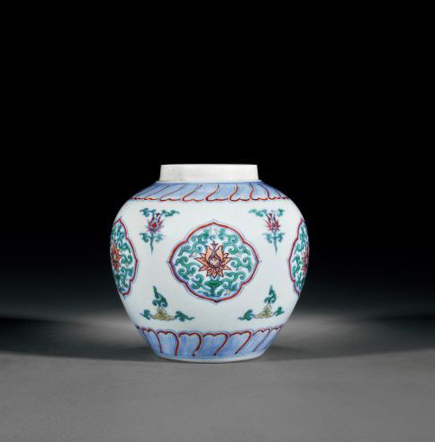 清雍正 仿成化斗彩開(kāi)光折枝蓮紋罐 成交價(jià):RMB 345,000