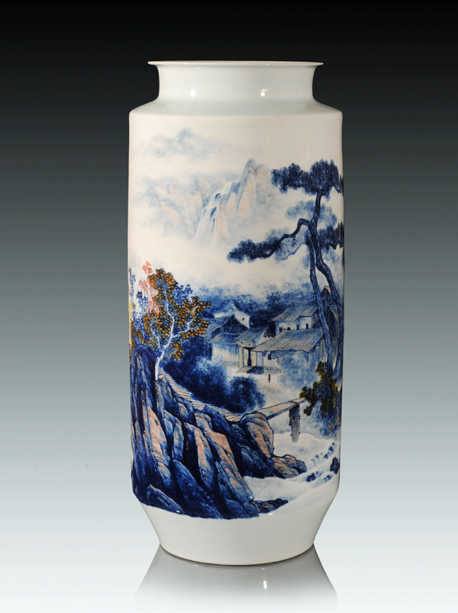 經(jīng)過(guò)在實(shí)踐中不斷探索和創(chuàng)新,形成了自己獨(dú)特的藝術(shù)風(fēng)格即"釉下堆雕山水",使作品具有獨(dú)特質(zhì)感效果。