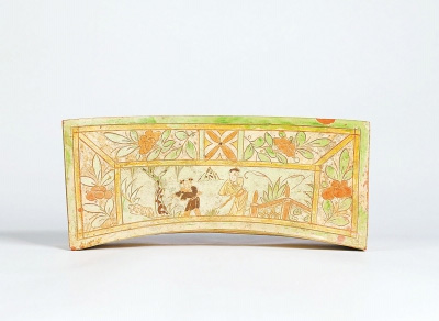 這件金代當陽峪三彩人物劃花枕,長41.5cm,寬18cm,高11.5cm,比起普通的枕頭顯得更長,像畫卷一樣展示著一個著名的中國故事:春秋時期陳留人孫元覺,十分孝順長輩,可他的父親卻嫌棄祖父病弱,有一天竟把老人綁在筐里,遺棄到深山。15歲的孫元覺苦求無效便跟進深山,再次懇求父親,父親不聽,扔下老人就走。孫元覺急中生智,撿起籮筐,父親問:“你拿它干嗎?”孫元覺答:“等你老了,我也用它把你扔進深山,省得再編新筐了!”父親聽后感到很羞愧,馬上把老人接回家贍養(yǎng)。