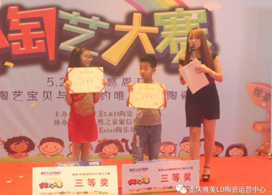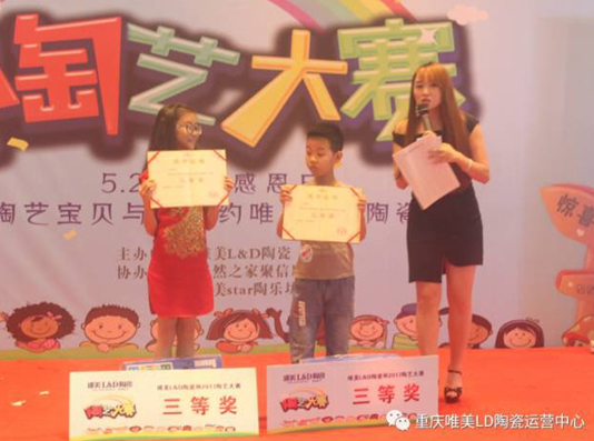 5月28日下午三點,“唯美L&D陶瓷杯”陶藝大賽重慶站在居然之家龍溪聚信店舉行。本次大賽由唯美L&D陶瓷主辦,由居然之家聚信店和淘樂坊承辦,陶藝大賽意在弘揚中國傳統(tǒng)陶瓷文化,通過陶藝制作來培養(yǎng)孩子們在陶藝、藝術方面的創(chuàng)新及動手能力,同時增進親子間的交流。