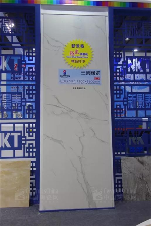 新景泰以“引領陶瓷施釉技術的工業(yè)4.0”為志業(yè),力推超寬噴墨機,最大打印寬度達1.8米、單件打印長度達5米,打印通道多達10個,F場展出其打印的1200×3600mm噴墨產品,令人駐足。