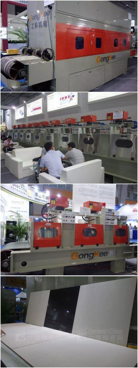 與此同時,工科作為諾貝爾等眾多知名品牌的裝備供應商,現場更是展出最小600 ×1200 mm,最大1600× 3200 mm的瓷磚產品。相關負責人表示,石材整線拋光將是企業(yè)未來傾注的重點。