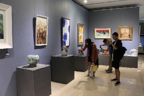 藝術瓷是景德鎮(zhèn)傳統(tǒng)陶瓷文化的重要組成部分。在藝術陶瓷展區(qū)內,68件瑰麗多姿的現(xiàn)代陶藝、凝練厚重的陶瓷雕塑、流光溢彩的瓷上彩繪,呈現(xiàn)出時代性、古典型、地域性和國際化的美學特質,帶來愉悅的視覺享受,其清脆激越與渾厚連綿的韻律之美讓人心馳神往、遐想無窮。王步、王希懷的青花斗彩《壽桃圖》,王錫良的天青釉開光《公園圖》,張松茂的粉彩《山高水長》等館藏藝術陶瓷精品也在現(xiàn)場與觀眾零距離接觸,展示了近現(xiàn)代景德鎮(zhèn)陶瓷藝術的獨特神韻。