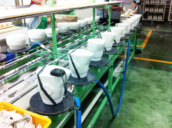 嚴(yán)格控制泥漿的水分和吃漿時間。攝于2014年某日用瓷工廠生產(chǎn)線