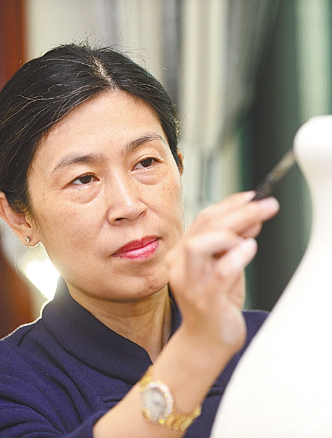 在景德鎮(zhèn)一個(gè)幽靜的工作室里,一杯清茶,幾縷濃香。古樸茶幾旁有位麗人,氣質(zhì)高貴而又親切可人;展柜里是各式樣的陶瓷,雖形不同,但都超凡脫俗而又根植傳統(tǒng),正如工作室名字——東方秀。這些藝術(shù)品,皆由麗人所做,麗人便是曾瑾。“瑾”有美玉之義,亦喻美德。人如其名,在景德鎮(zhèn)這個(gè)陶瓷藝術(shù)家“工廠”,曾瑾就是塊不可多得的“美玉”。