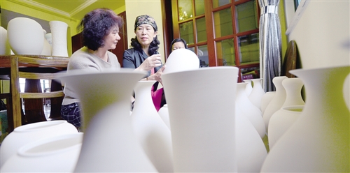 曾瑾對(duì)陶瓷器形有自己獨(dú)特的理解,這是她在挑選器形。