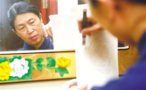 曾瑾在工作室刻畫作品,她認(rèn)為作品是內(nèi)心的一面鏡子。