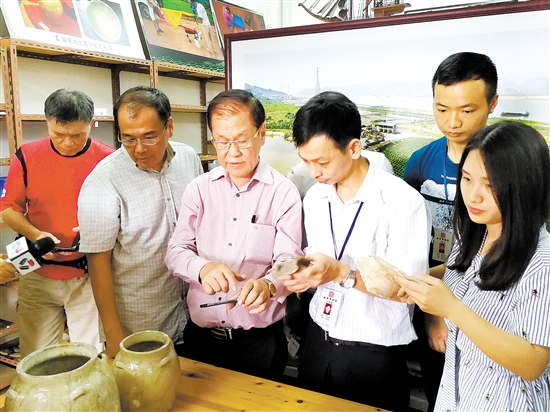 日前,新加坡文物專家林亦秋帶領(lǐng)新加坡古陶瓷鑒賞會一行來到新會,實(shí)地探訪位于古井鎮(zhèn)官沖村碗碟山的新會官沖窯遺址。專家們與新會區(qū)文物研究者交流,并到新會博物館鑒賞出土的官沖窯文物。在“一帶一路”國家戰(zhàn)略背景下,林亦秋等人此行意義重大,以官沖窯為紐帶,新加坡、印尼等地與新會的友好交流再次加深,新會進(jìn)入“一帶一路”朋友圈。