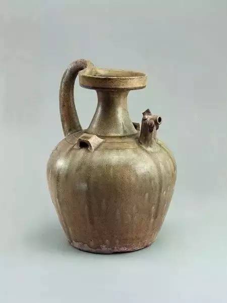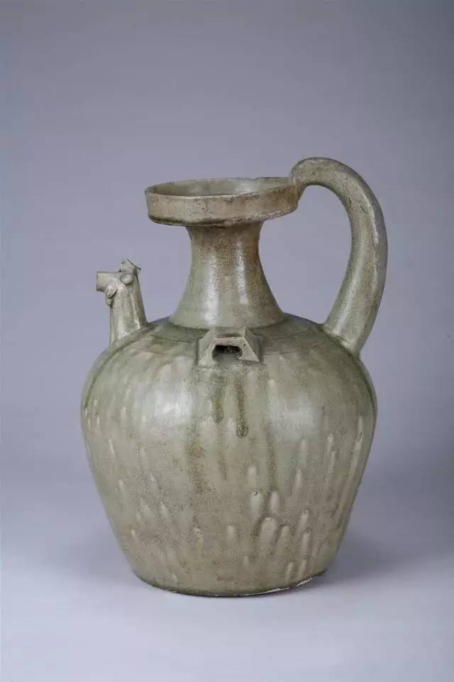 宋 粉清釉龍泉窯雙耳廣口瓶