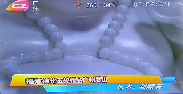 7月20日,當(dāng)代德化名瓷展亮相廣州步行街北京路潮州匯館展出,德化白瓷倍受青睞,受到各媒體的關(guān)注,廣州電視臺(tái)、羊城晚報(bào)、中華陶瓷網(wǎng)紛紛對(duì)展覽進(jìn)行報(bào)道。