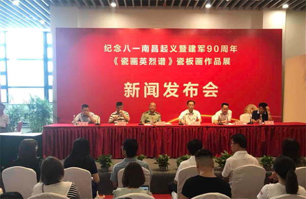 中國江西網(wǎng)訊 記者謝夢麗、實習(xí)生徐婷報道:7月30日上午,由江西省政府新聞辦、南昌市委、南昌市人民政府聯(lián)合舉辦的《瓷畫英烈譜》瓷板畫作品展新聞發(fā)布會在江西省展覽中心舉行。此次展出的《瓷畫英烈譜》瓷板畫作品展將展出90幅以英烈譜為主體的瓷板畫藝術(shù)作品,是全國首創(chuàng)南昌瓷板畫在軍事題材創(chuàng)作上的一次全面展示,以此隆重紀(jì)念八一南昌起義暨中國人民解放軍建軍90周年。
