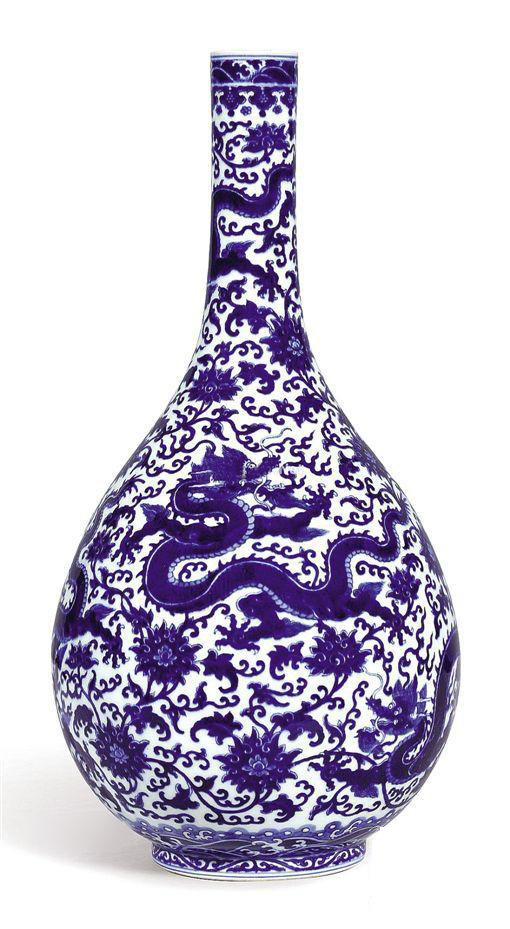 4 清乾隆青花穿蓮龍紋長(zhǎng)頸膽瓶 HKD 49037500 2017香港蘇富比春拍