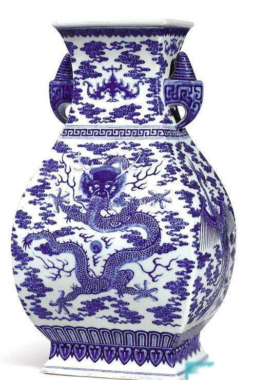清乾隆 青花龍鳳云蝠紋鳩耳方壺 香港蘇富比2017春拍 成交價(jià)HKD44,537,500
