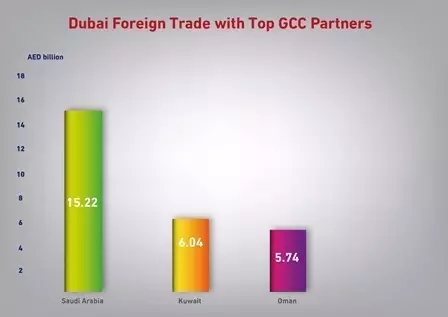 海合會(huì)和阿拉伯國家中,沙特蟬聯(lián)迪拜最大貿(mào)易伙伴,雙邊貿(mào)易額152.2億迪拉姆,同比增長4.7%。