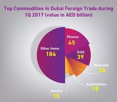 手機(jī)依舊是迪拜第一季度最大額貿(mào)易商品,貿(mào)易額450億迪拉姆(占總額14%);黃金和珠寶分列二、三位,貿(mào)易額分別為390億和260億迪拉姆;汽車產(chǎn)品貿(mào)易額180億迪拉姆,珠寶150億迪拉姆。
