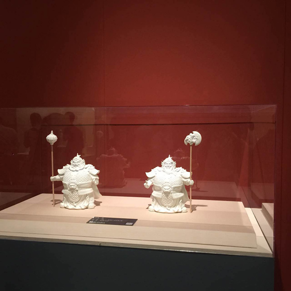 《哼哈二將》的作品將人物刻畫得淋漓盡致,惟妙惟肖:手拿法器,害睜眼鼓鼻,怒目而視,威武雄壯,保衛(wèi)佛國與佛法永遠不受侵。在傳統(tǒng)技法上,加于夸張和抽象表現(xiàn)手法,以獨特的構(gòu)思和創(chuàng)意,把中國的傳統(tǒng)文化和現(xiàn)代審美意識融合在一起。經(jīng)過1300度,24小時高溫燒制,增加作品的空間感和層次感,更賦予作品豐富的文化內(nèi)含和“中國白”雕塑的藝術(shù)價值。