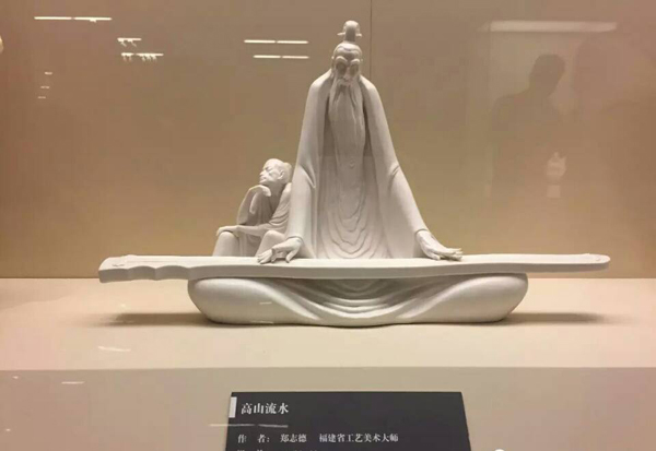 《高山流水》是鄭志德代表作品,作品手刻簽名,作品被評選為福建省現(xiàn)代陶瓷精品金獎,被福建博物院、韓國江原大學(xué)永久收藏,伯牙端坐撫琴,子期坐在近旁側(cè)耳聆聽。作品著重塑造了伯牙形象,創(chuàng)造性地將其前身置空,長胡須自然下垂,與衣服融合一體,呈現(xiàn)出流水狀態(tài),大膽灑脫,渾樸大氣,三角造型厚重典范,大寫意的手法表現(xiàn)出賢德之人的品德。