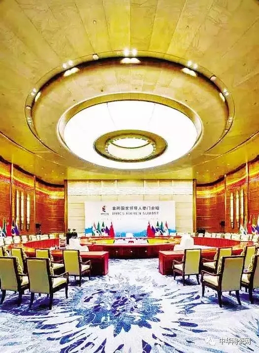 鳳凰廳是此次廈門會晤最重要的會議場館之一,舉辦的是金磚五國大范圍會議。這個大廳的設(shè)計,則充滿了“閩南元素”。