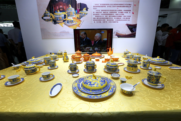 會展現(xiàn)場精美的瓷器。