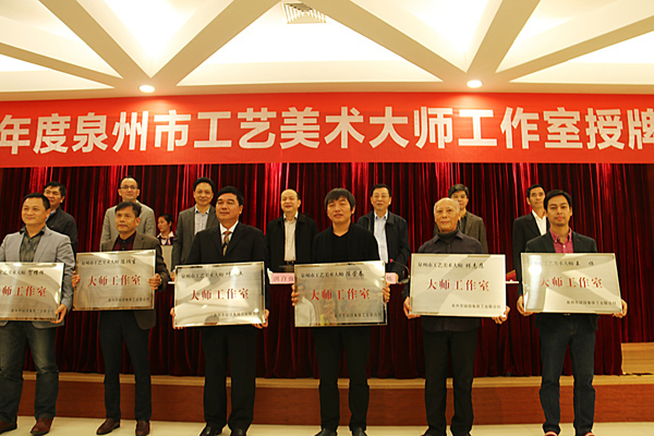 泉州市舉行2016年度工藝美術(shù)大師工作室授牌儀式,向30名在泉州產(chǎn)業(yè)中極具代表性的領(lǐng)銜大師授牌成立工藝大師工作室。