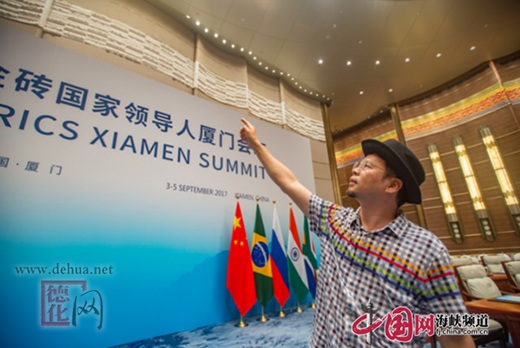 事實(shí)上,德化陶瓷進(jìn)入金磚國家領(lǐng)導(dǎo)人廈門會(huì)晤現(xiàn)場的并不止陳仁海一個(gè),放眼此次舉世矚目的廈門金磚會(huì)晤全過程,細(xì)心的觀眾會(huì)發(fā)現(xiàn)德化陶瓷元素幾乎無處不在。