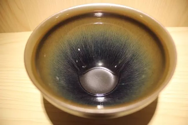 許家有善于燒制兔毫,其金兔毫作品毫紋清晰細膩,毫毛如銀針,細致綿長;銀兔毫作品則黑底銀針,絲絲新亮,油滴作品結晶效果好,斑紋飽滿均勻。