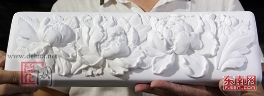 “瓷器這種軟裝飾材料被當(dāng)做硬裝飾材料,這在國內(nèi)應(yīng)屬首創(chuàng)。”據(jù)該公司總經(jīng)理曾昭騰介紹,項目團隊采用銅絲加AB膠的方式固定白瓷。復(fù)雜精致的花紋構(gòu)造、純手工雕刻修模加上嚴(yán)格的標(biāo)準(zhǔn),極大考驗了創(chuàng)作團隊的“精細(xì)活”,也使得初始時期的成品率幾乎為零。但項目團隊沒有放棄,單設(shè)計方案就幾易其稿,對坯體進行多次燒制試驗,逐漸把握燒成的收縮率,成品率才逐漸提高到70%。歷時3個月,最終從數(shù)千塊瓷片中精選出518塊,讓德化白瓷實現(xiàn)了完美上墻。