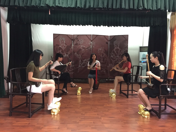 (南音專業(yè)的學生在排練,腳踩金獅)