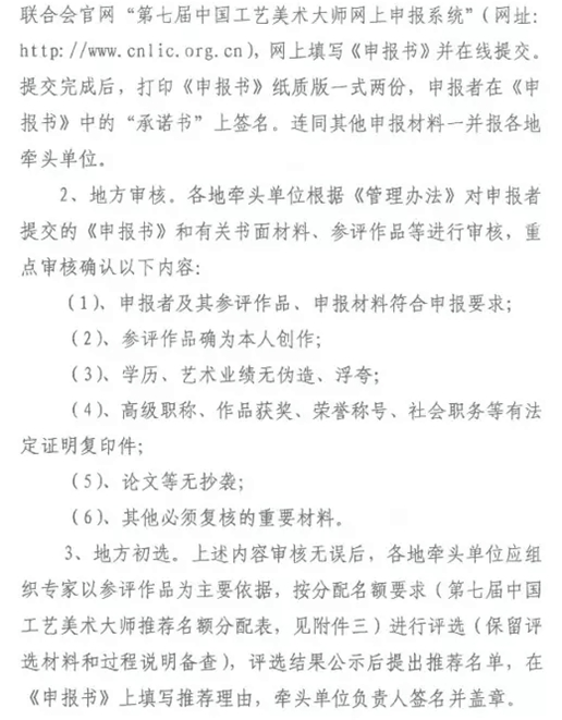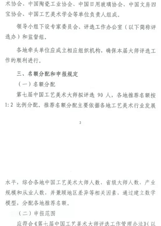▲第七屆中國(guó)工藝美術(shù)大師推薦名額分配表