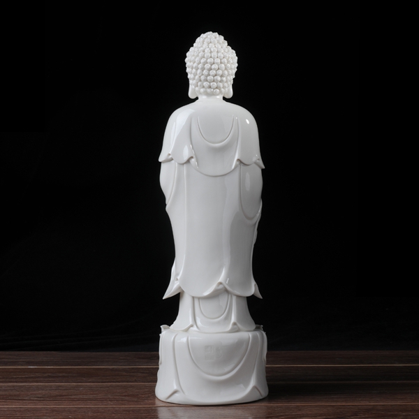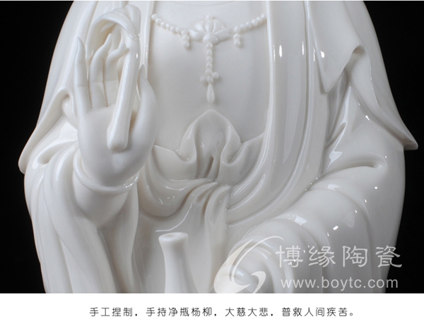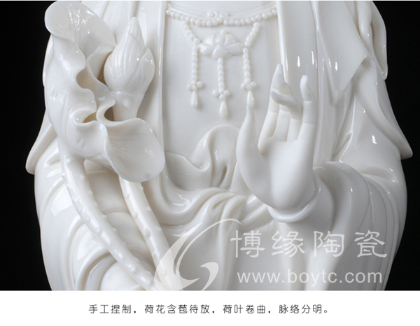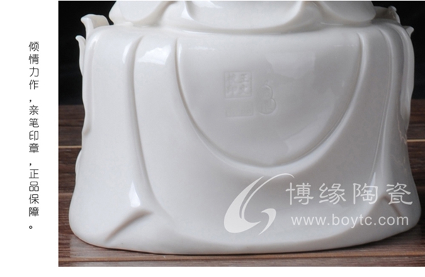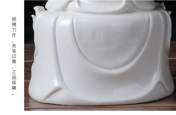 作品意境超然,純手工捏制雕塑,靈動脫俗,佛像的項鏈珠串,凹凸有致,長袍衣紋無風自動,線條流暢靈動,盡顯優(yōu)雅,手部,指尖,纖細修長,透亮光澤,每個細節(jié)都是大師純手工精心捏塑,技藝精湛。作品背部附有作者親筆印章,具有很高的藝術(shù)性,鑒賞性和收藏價值。