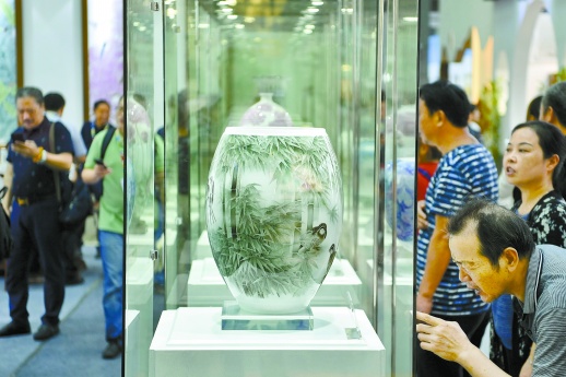 9月28日上午,2017中國(guó)醴陵國(guó)際陶瓷產(chǎn)業(yè)博覽會(huì)現(xiàn)場(chǎng),觀眾在欣賞陶瓷藝術(shù)精品。湖南日?qǐng)?bào)記者 童迪 攝