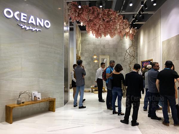 占據(jù)廣交會(huì)最醒目位置歐神諾展位,演繹著一股現(xiàn)代中式風(fēng),以“一期一會(huì)”為主題,把經(jīng)典、簡(jiǎn)約的時(shí)尚風(fēng)格延續(xù)到展廳設(shè)計(jì)中,新中式的格調(diào)、有質(zhì)感的色調(diào)、有序的布局,呈現(xiàn)出一個(gè)簡(jiǎn)約大氣、極具中式特色的整體空間。主打的產(chǎn)品有卡薩羅、卡拉卡塔及配套瓷片、大理石4T,它們以時(shí)尚簡(jiǎn)約的獨(dú)特設(shè)計(jì)風(fēng)格和匠心工藝制作使瓷磚本身升級(jí)為家居藝術(shù),傳遞出一種更為簡(jiǎn)約、雅致的生活方式。
